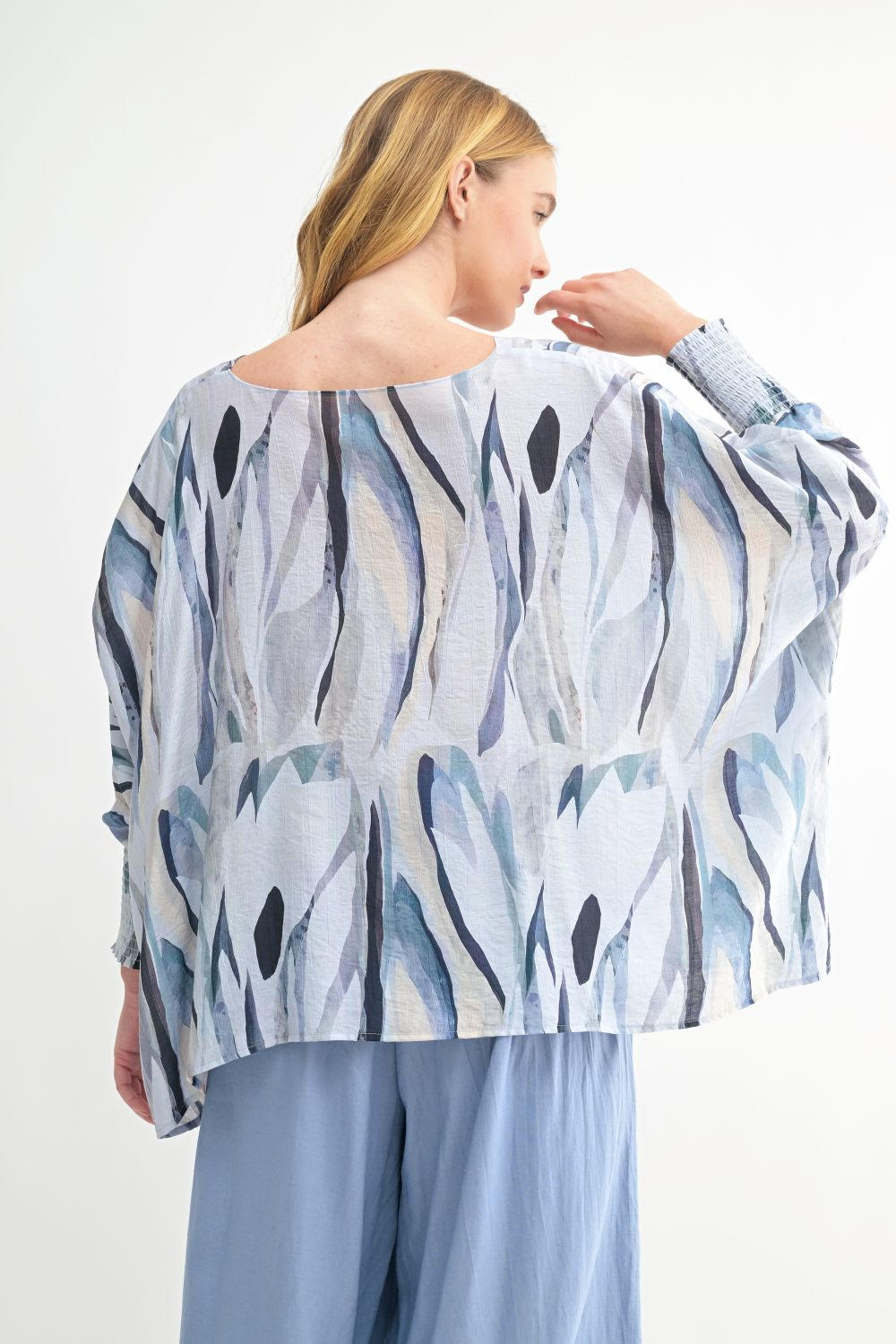 Add a splash of whimsy to your wardrobe with the Fun2Fun Abstract Print Smocked Cuff Sleeve Oversized Top. Its vibrant abstract pattern and playful smocked cuffs bring a fun, relaxed vibe, while the oversized fit ensures all-day comfort. Perfect for mixing and matching, this top effortlessly brightens up any casual look.