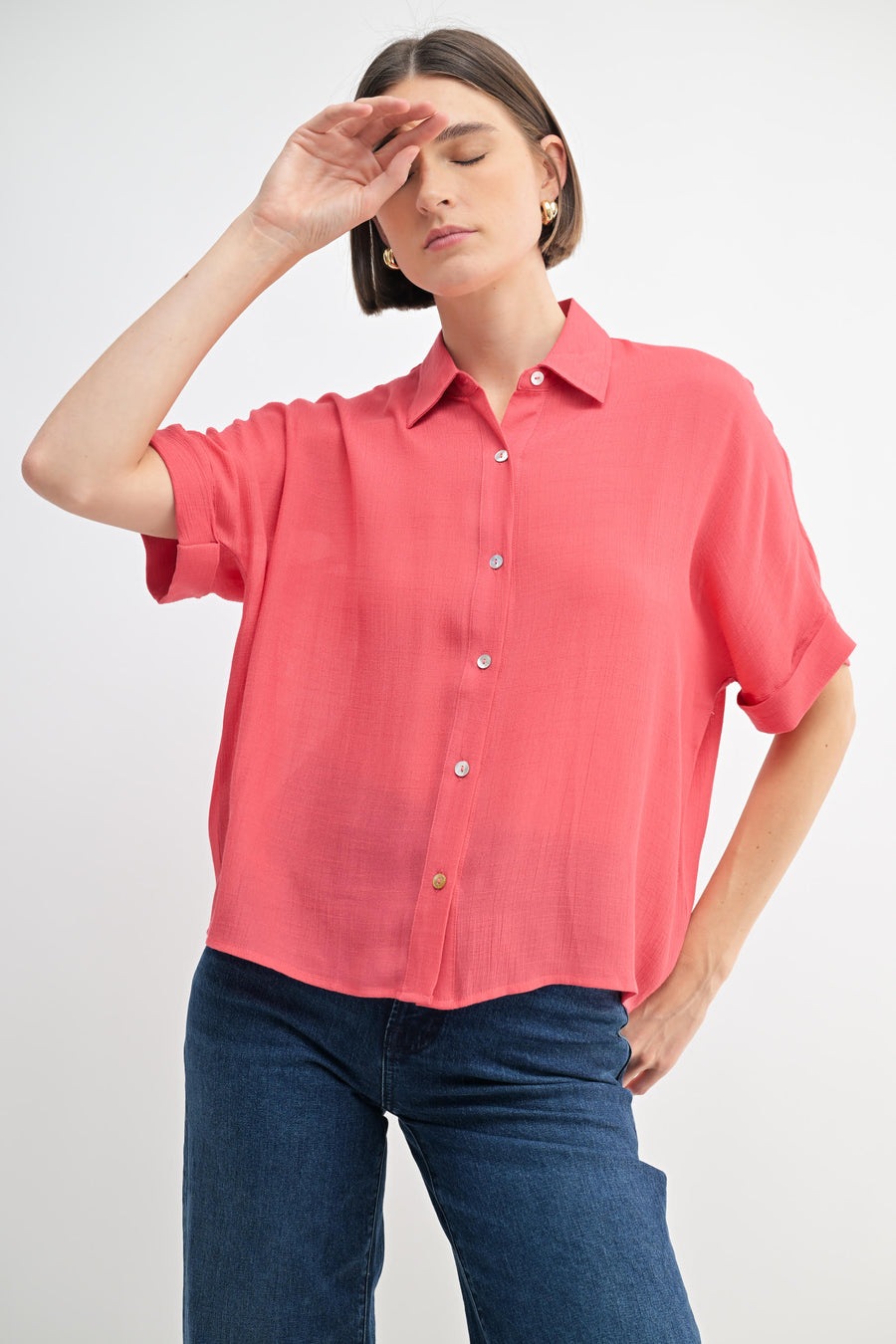 Elevate your style with our Fun2Fun Short Sleeve Collar Shirt! The button front design and short sleeves make it perfect for any occasion. Stay cool and confident while looking effortlessly stylish. Take your wardrobe to the next level with this must-have addition.