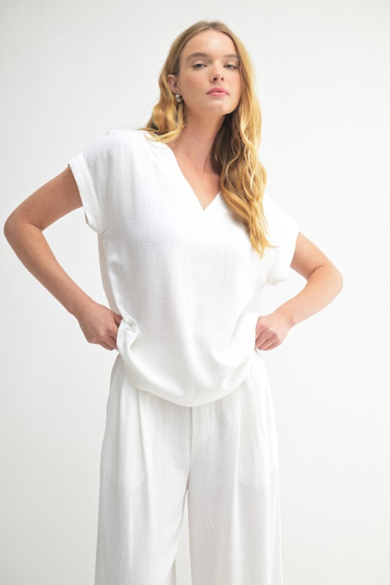 Introducing the Fun2Fun V-Neck Dolman Short Sleeve Top. Upgrade your wardrobe with this stylish and comfortable top. With its flattering v-neck and loose-fitting dolman sleeves, this top is perfect for any occasion. Elevate your look and feel confident with Fun2Fun.