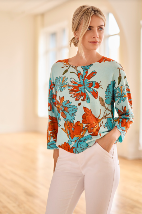 Introducing the Tribal 3/4 Sleeve Crew Neck Sweater, a must-have for any fashion-forward individual. This stunning sweater features a unique tropical pattern that will make you stand out in any crowd. With its 3/4 sleeves and crew neck design, it's both stylish and comfortable. Get yours today and elevate your wardrobe!