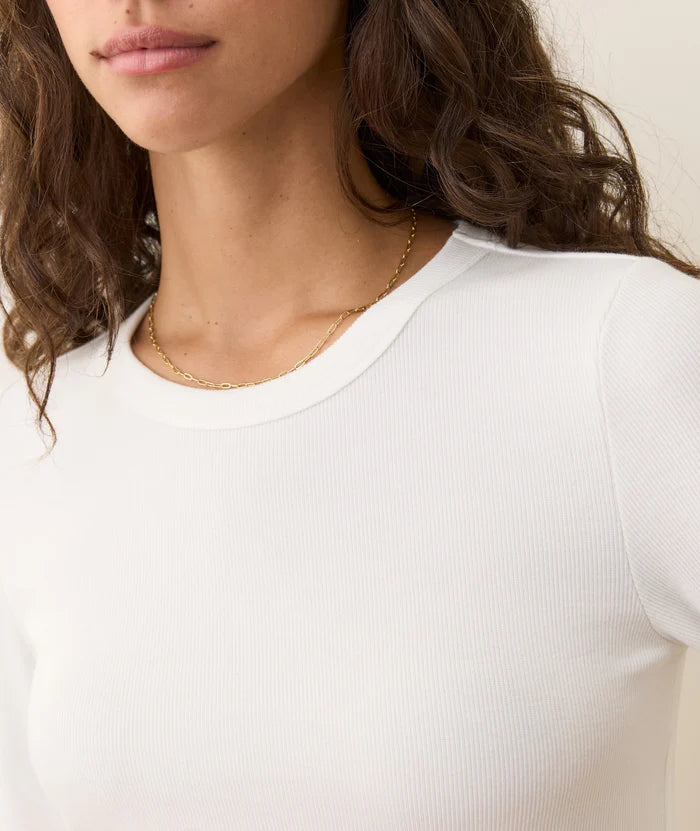 Stay cozy and cool in the Marine Layer Long Sleeve Lexi Rib Sun-In Crew Tee. Its soft ribbed fabric hugs you just right, while the sun-in treatment gives each tee a unique, sun-kissed look. Perfect for layering or wearing solo, this playful crewneck adds effortless style and comfort to any outfit. Whether you're out chasing the sun or lounging indoors, this tee is ready to brighten your day.