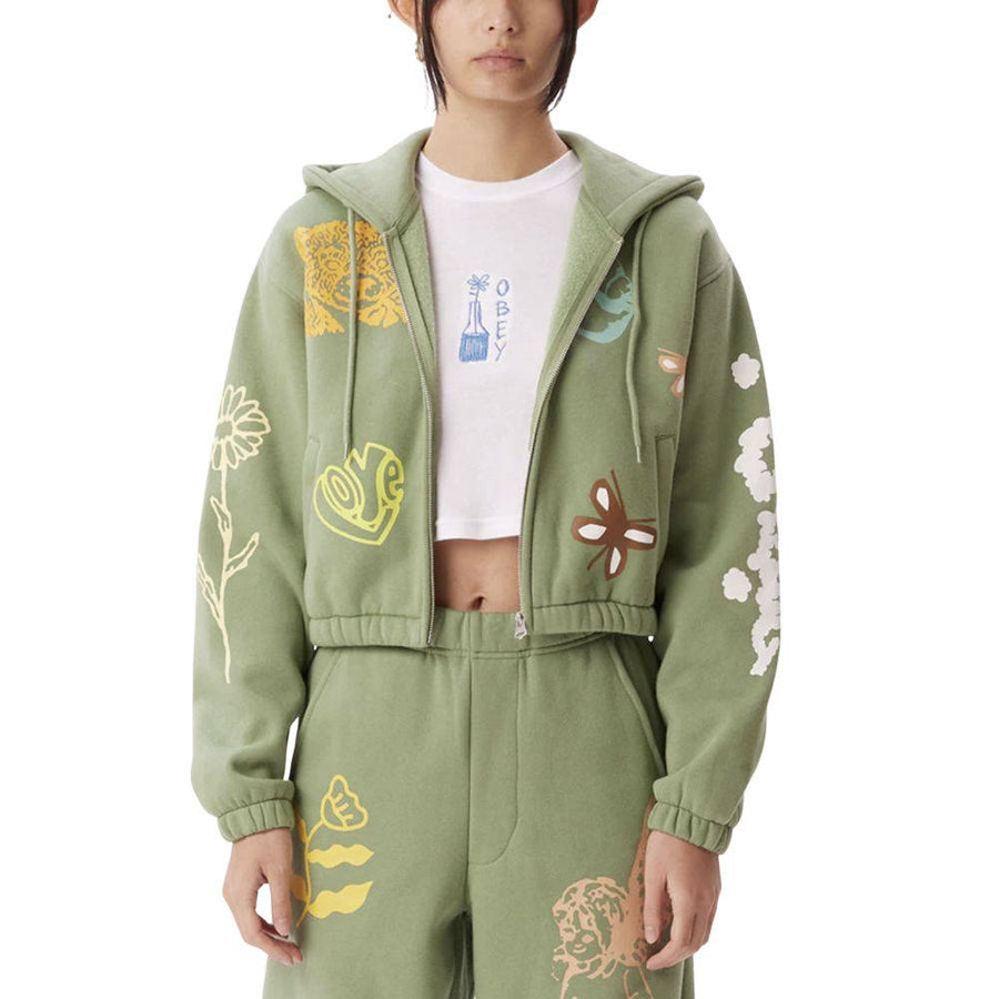 THE OBEY LUKE CROPPED ZIP-UP HOODIE COMES IN A REGULAR FIT.