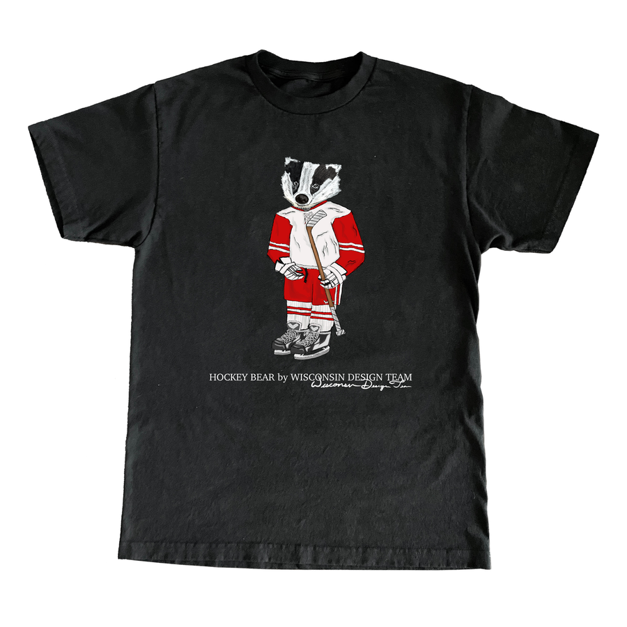 Show your team spirit with the Wisconsin Design Team Hockey Bear Tee! This playful tee features a fun bear graphic that’s perfect for hockey fans who love a touch of whimsy. Comfortable and casual, it’s great for game days or just hanging out with friends. Embrace your wild side and cheer on your team in style!