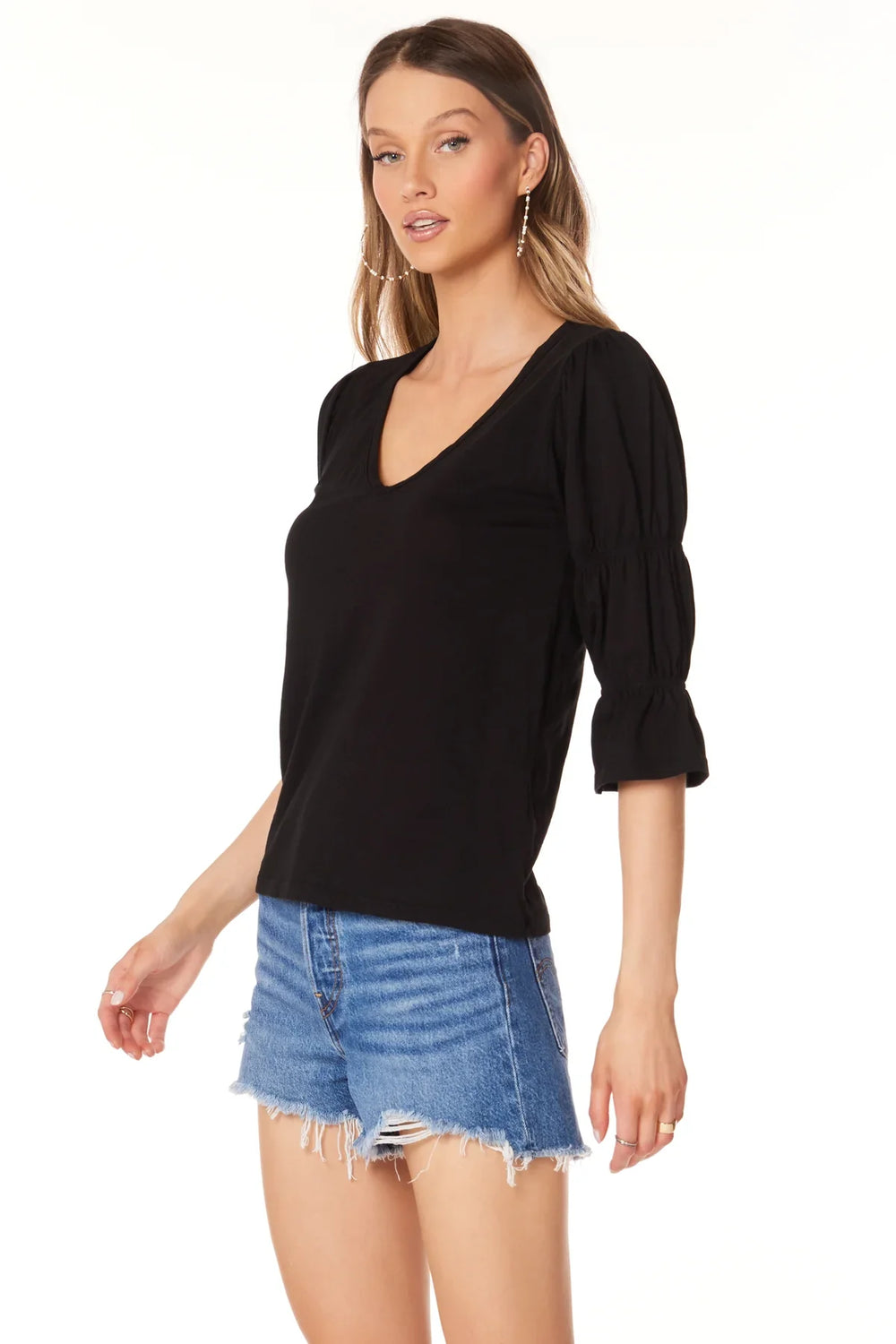 Get ready to turn heads with the Bobi Elastic Detail Top! Made with a flattering V-neck and playful elastic details, this 3/4 sleeve top will add a touch of fun to any outfit. Comfortable yet stylish, it's perfect for a casual day out or a night on the town. Make a statement with the Bobi Top today!