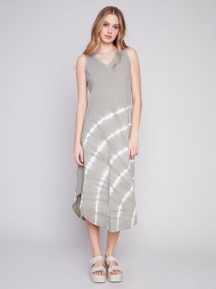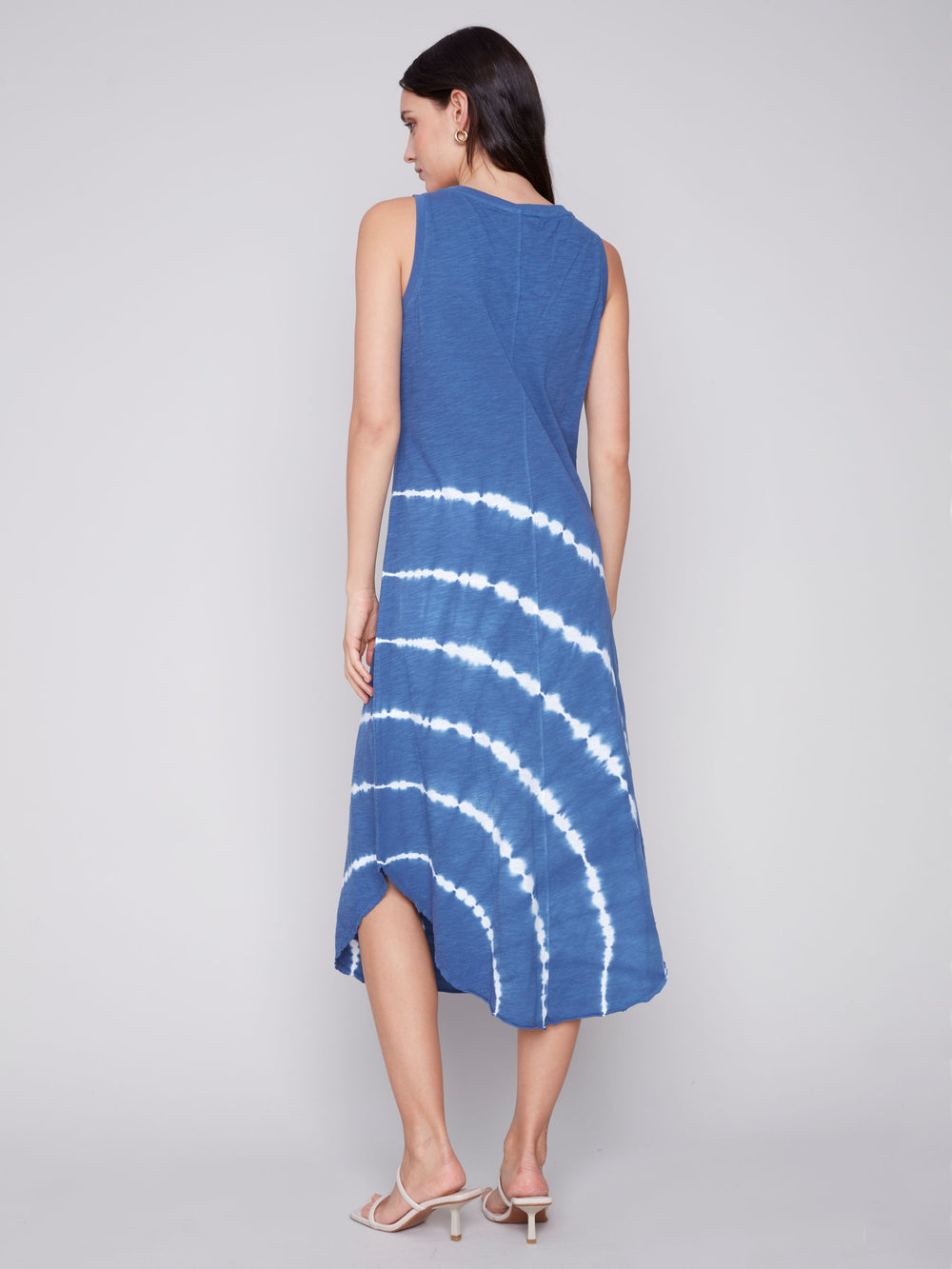 This Charlie B dress combines trendy tie dye with a flattering sleeveless V neck design and a stylish shirtail hem. Made from high-quality materials, it offers exceptional comfort and durability. Perfect for any occasion, this dress is a must-have addition to your wardrobe.