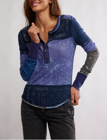 Embrace cozy vibes with the Free People Indie Printed Cuff long sleeve. Crafted from soft cotton jersey, it features a playful printed panel design, a classic henley neckline, and signature elongated ribbed cuffs for extra charm. The rounded hem and exposed seams add a laid-back, stylish touch perfect for everyday adventures.