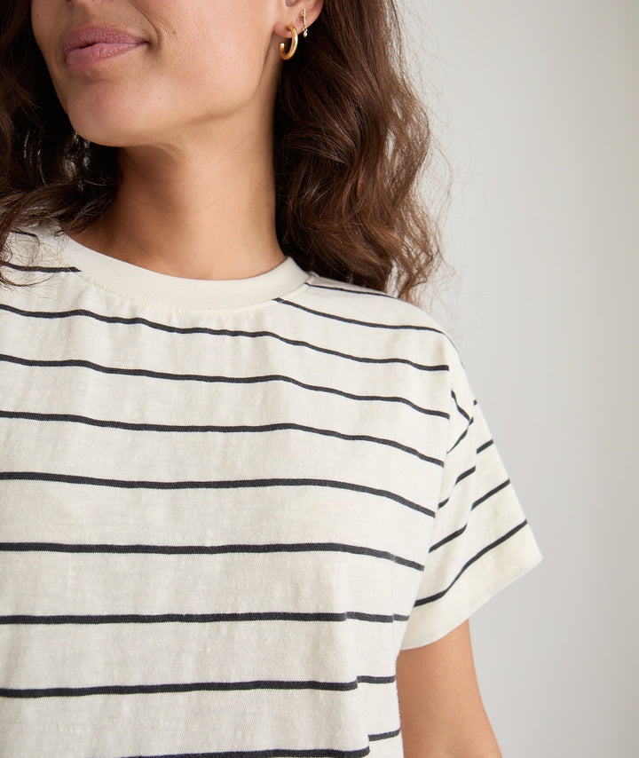 Introducing the Marine Layer Vintage Slub Crop Tee. Made from our signature vintage slub fabric, this crop tee features a flattering relaxed fit and a soft, lightweight feel. Perfect for any casual occasion, it's a must-have addition to your wardrobe.