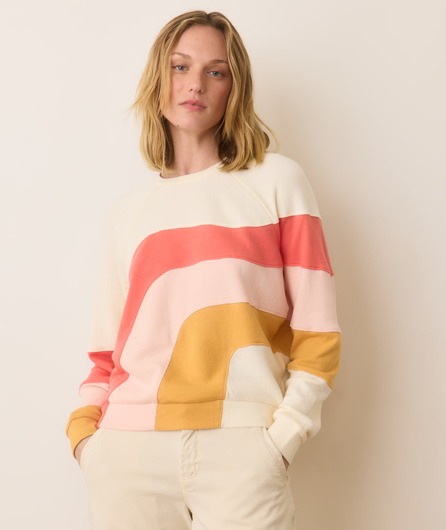 Ride the wave of comfort and style with our Marine Layer Vintage Terry Sweatshirt. Made from heavyweight 100% cotton, this vintage crew neck is designed with a unique wave color pattern. Perfect for lounging or layering, this sweatshirt is the perfect blend of cool and cozy.