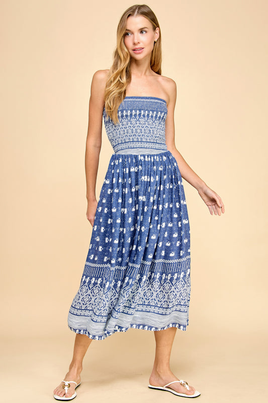 Step into summer fun with the Millibon Aztec Smocked Tube Dress! This playful dress features a vibrant Aztec pattern and a comfortable smocked tube design that hugs your curves just right. Perfect for sunny days and casual outings, it offers a breezy fit that keeps you cool while turning heads. Add a splash of color and effortless style to your wardrobe with this lively, easy-to-wear dress.