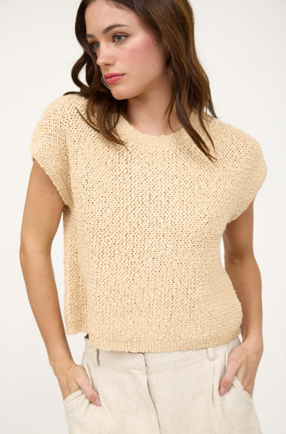 Elevate your wardrobe with the Mine Textured Crew Neck Short Sleeve Pullover. Featuring a stylish crochet knit and ribbed trim, this solid sweater top offers a unique textured look that stands out. Its breathable, unlined design ensures comfort while the short sleeves and classic crew neckline make it perfect for layering or wearing alone. Ideal for adding a touch of sophistication to any casual outfit.