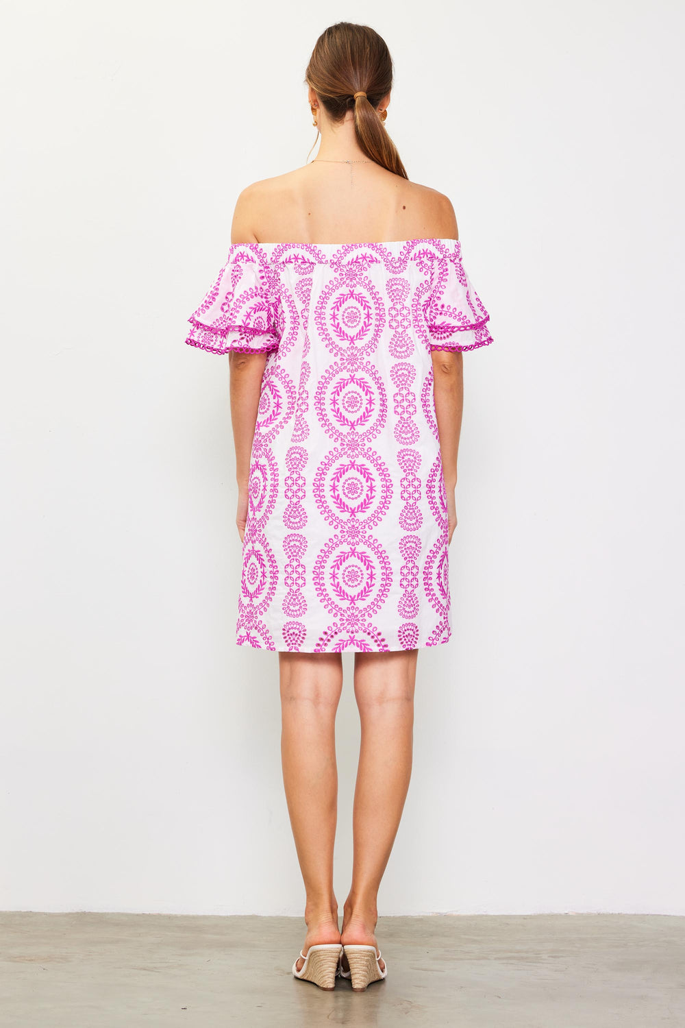 Get ready to turn heads with this playful Skies Are Blue Embroidered Eyelet Off Shoulder Dress. The eyelet design adds a touch of whimsy, while the off shoulder style shows off your fun and flirty side. Perfect for a day at the beach or a night out with friends. (Warning: may cause dress envy!)