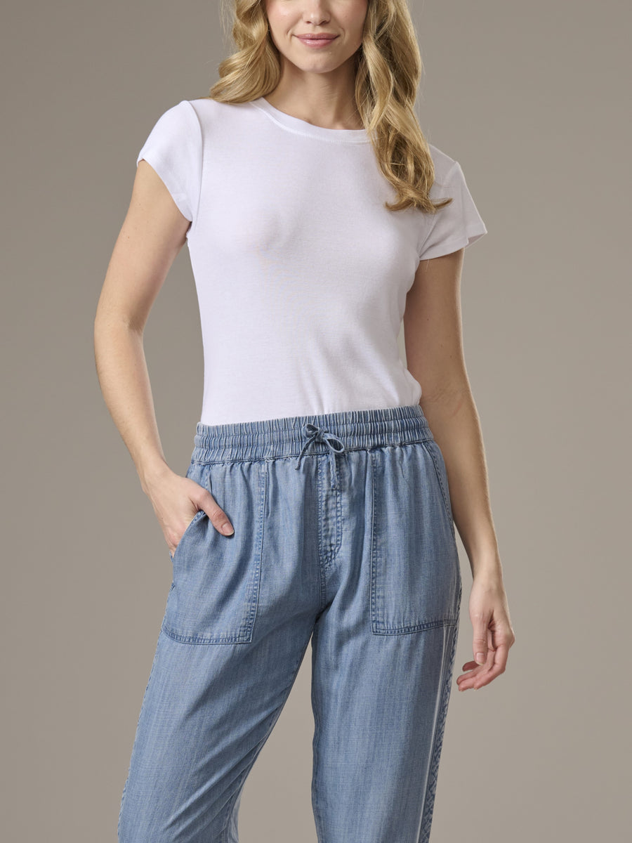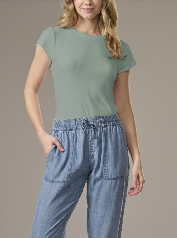 The Splendid Faye 1x1 Crew Neck Tee is a staple in any wardrobe. Made with soft and breathable fabric, this tee offers all-day comfort. The classic crew neck design and 1x1 rib construction give it a timeless look. Perfect for layering or wearing alone, this tee is a versatile essential.