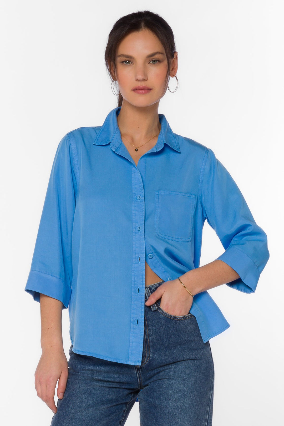 This Velvet Heart Blake Shirt features a soft, luxurious velvet material that creates a sophisticated and elegant look. With its comfortable fit and unique fabric, this top is perfect for adding a touch of glamour to any outfit. Elevate your style with the Velvet Heart Blake Shirt.