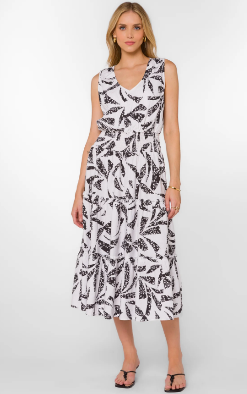 Step into effortless charm with the Velvet Heart Lorenza V Neck Midi Dress. This playful sleeveless dress features flirty tiered ruffles and a smocked waist that hugs your figure just right. Crafted from a breathable linen-viscose blend, it offers a soft drape and textured feel perfect for any occasion. Available in chic Black and White Skin, it’s easy to care for with a simple cold machine wash. Designed to flatter and move with you, this dress is your new go-to for sunny days and stylish nights.