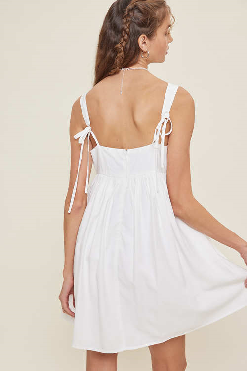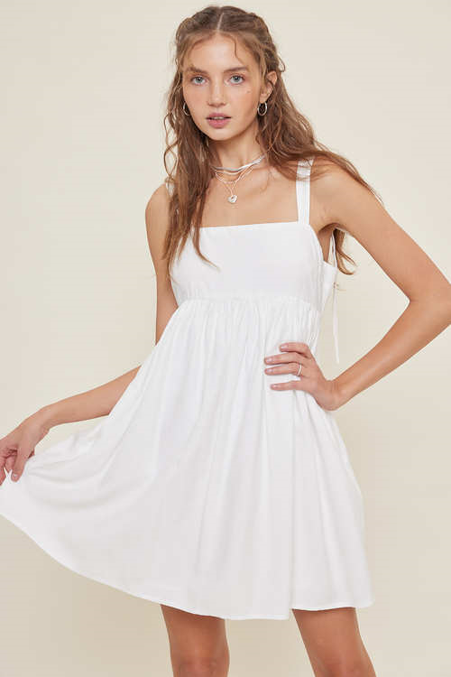 Be a ditto of style with this playful babydoll dress from Idem! Featuring unique ribbon straps and a square neck, this dress is perfect for any occasion. Stay trendy and comfy. (Style, trend, comfort)