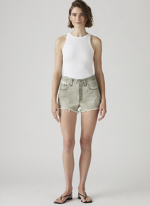 Experience the timeless appeal of the Levi’s 501 Original Short in Cloudy Cypress. Crafted from lightweight cotton, these shorts offer breathable comfort while flattering your waist with a vintage-inspired fit. Designed to lengthen your legs and hug you in all the right places, they are the perfect summer essential for effortless style and all-day wear.