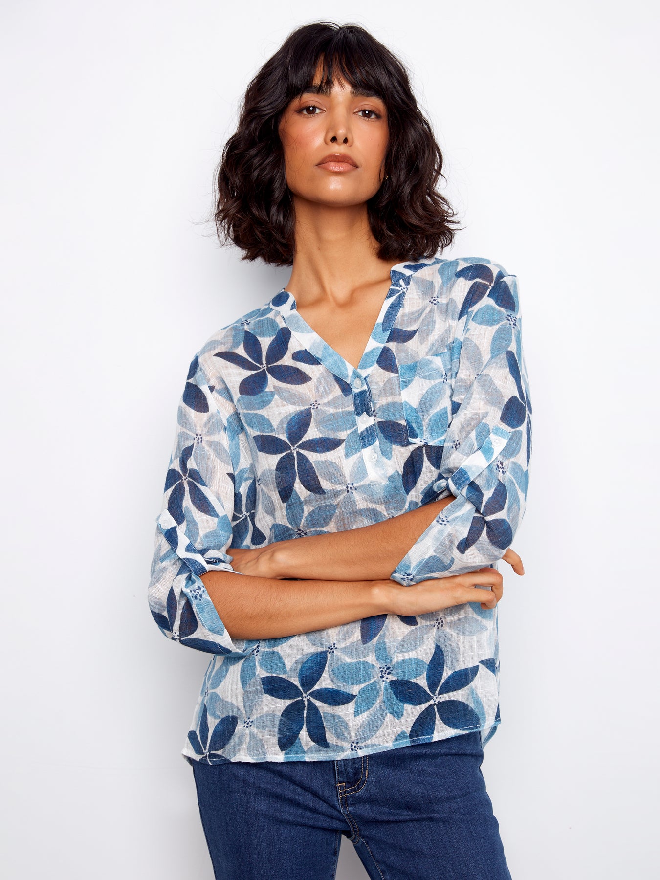Elevate your casual wardrobe with this charming Charlie B printed cotton gauze blouse! The lightweight, breathable fabric keeps you comfortable all day long, while the half-button front and rolled-up sleeves add effortless style and versatility. Perfect for layering or wearing solo, this printed beauty transitions seamlessly from weekend brunch to relaxed office vibes. Discover why cotton gauze is the go-to choice for warm-weather dressing that feels as good as it looks!