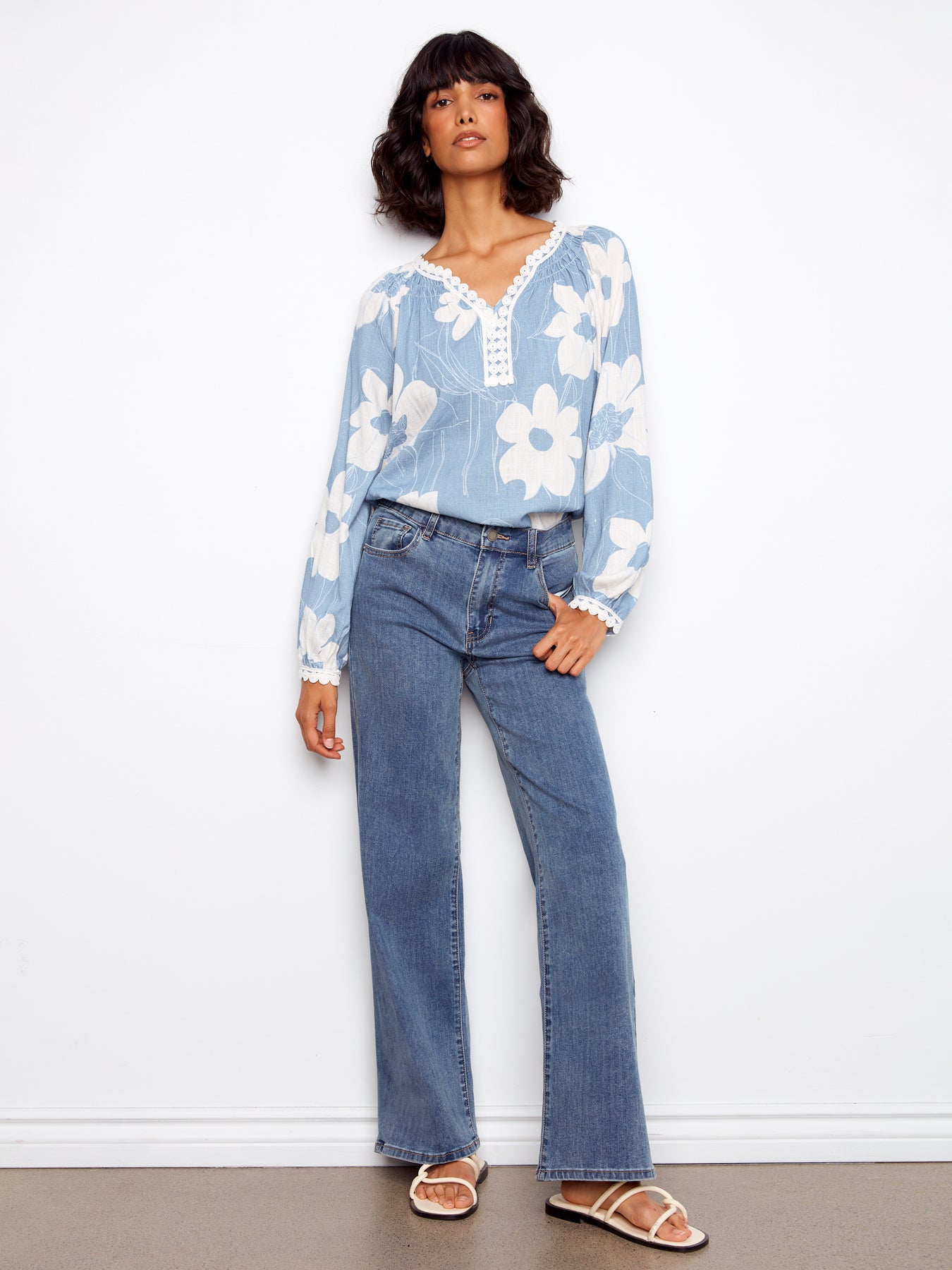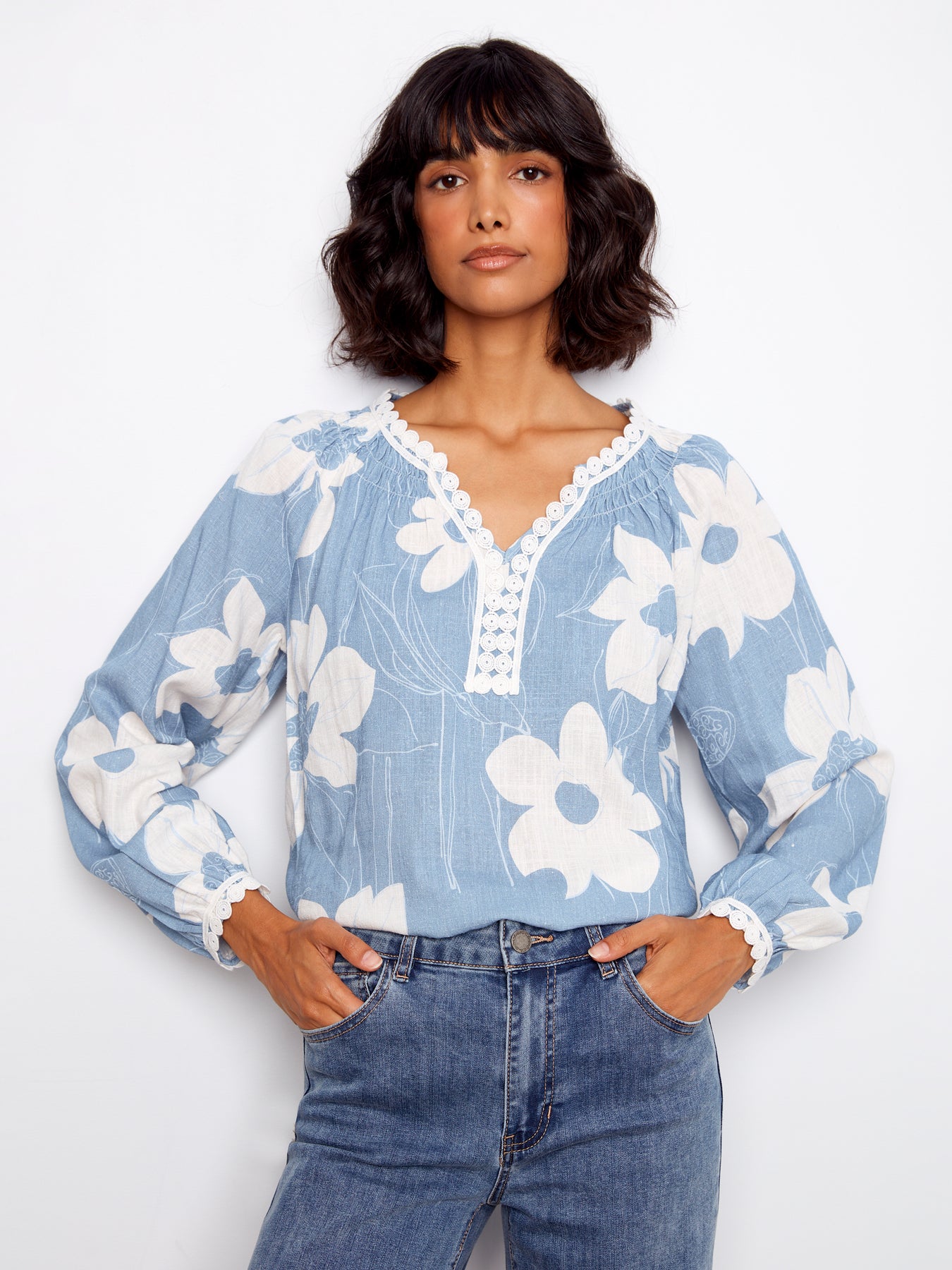 Elevate your everyday style with this charming printed linen blend raglan blouse! The relaxed raglan sleeves offer comfortable movement, while the delicate crochet trim adds a touch of feminine sophistication. Perfect for layering or wearing solo, this versatile piece transitions seamlessly from casual weekends to polished workdays. The breathable linen blend keeps you cool and comfortable all season long. A wardrobe essential that brings effortless elegance to any outfit!