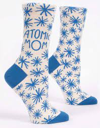 These Blue Q Atomic Mom Crew Socks are a perfect blend of style and comfort. Made with a soft, breathable material, they feature a vibrant atomic print design that will make you stand out. The crew length provides ample coverage and support for all-day wear. Perfect for any mom looking to make a statement.