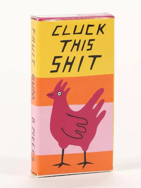 Indulge your sense of humor and freshen your breath with Blue Q Cluck This Shit Gum. This hilarious gum features a fun packaging and a delicious mint flavor. Made with natural ingredients, this gum is perfect for a quick laugh and a burst of freshness.