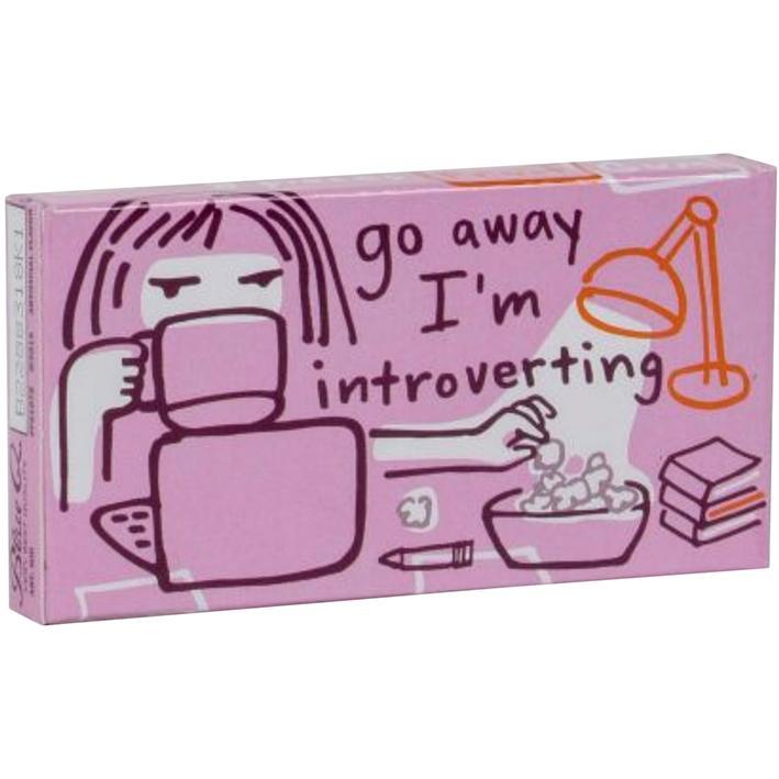 "Boost your introvert game with Blue Q's Go Away I'm Introverting Gum. Formulated with a refreshing mint flavor, this gum also helps combat social exhaustion and promote much-needed solitude. Perfect for quiet moments and recharging your batteries. Contains 8 pieces."