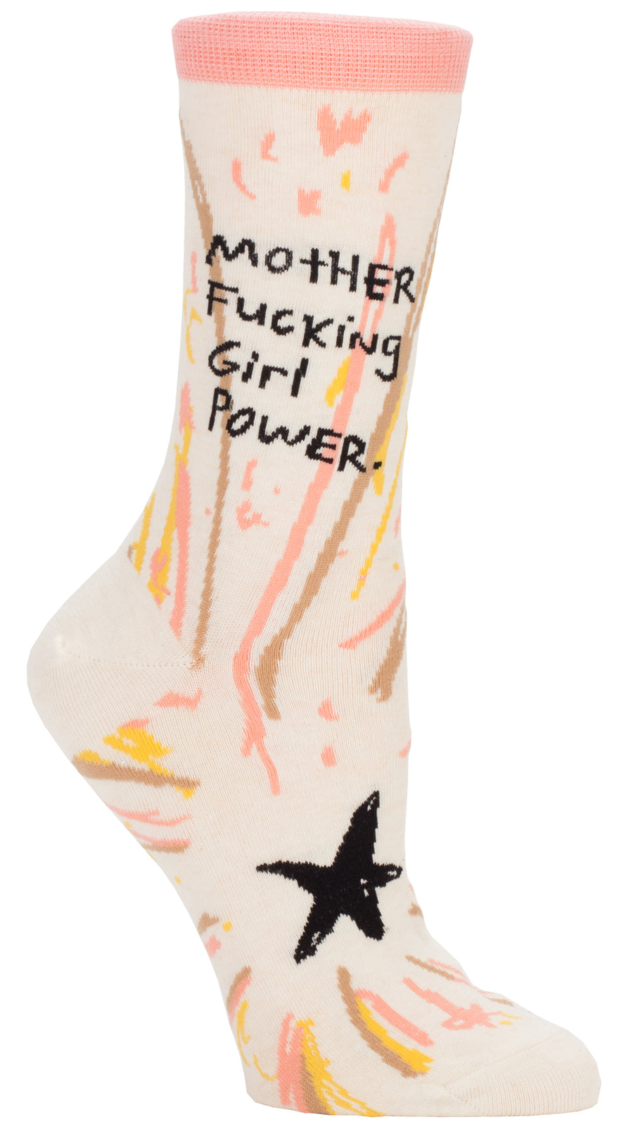 Show off your rebellious side with the Blue Q Mother F-ing Girl Power Socks. These bold and colorful socks are a statement of empowerment and individuality. Perfect for those who aren't afraid to speak their minds and stand out from the crowd. (Slay, queen! 👑)