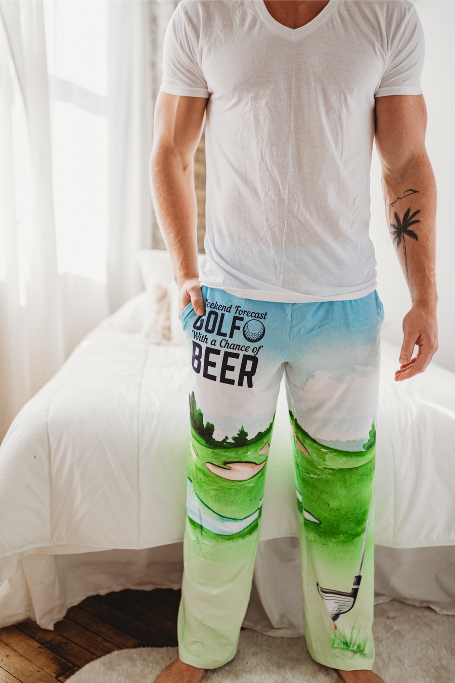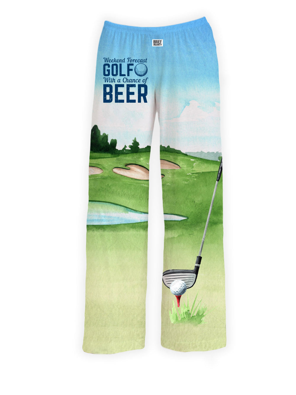 Add some personality to your golf attire with Dale's Exclusive Golf With A Chance Of Beer Lounge Pants. Rule the course in style with these comfortable and quirky pants that guarantee a good time (and maybe a cold brew).
