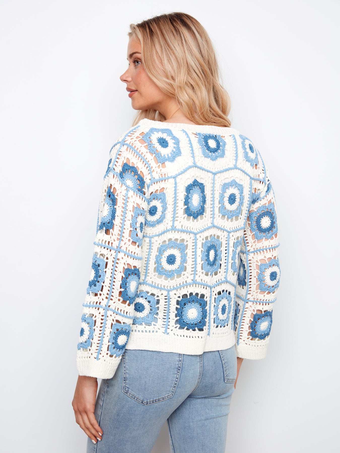 Embrace timeless charm with this delightful granny square crochet sweater! Featuring a classic white and blue pattern, this Charlie B design brings nostalgic warmth to your wardrobe. The relaxed drop shoulder silhouette offers effortless comfort and a modern twist on vintage style. Perfect for layering or wearing solo, this cozy piece celebrates handcrafted beauty and retro-inspired fashion. Whether you're channeling cottage-core vibes or simply craving comfort, this sweater delivers both style and soul in every stitch.
