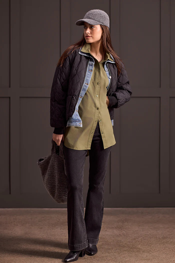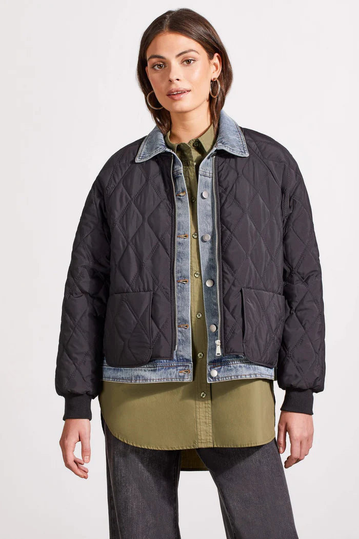 Effortlessly achieve a chic layered look with the Tribal Fooler Quilted Bomber Jacket. The lightweight design and zip-up front with buttons underneath add convenience, while the fooler denim collar and placket elevate the style. With raglan sleeves and roomy patch pockets, this jacket combines fashion and function in one.