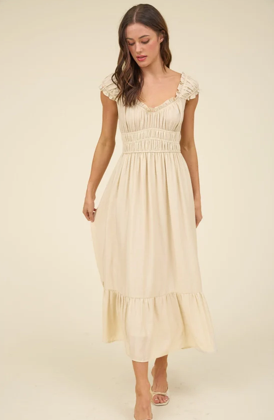 Step into effortless charm with the Mine Shirred Waist Short Sleeve Midi Dress. Its playful shirred waist flatters your silhouette while the short sleeves keep things light and breezy. Perfect for sunny days or casual outings, this midi dress combines comfort and style in one delightful package. Embrace your fun side with a look that’s as lively as you are!