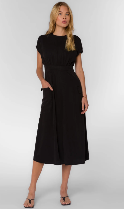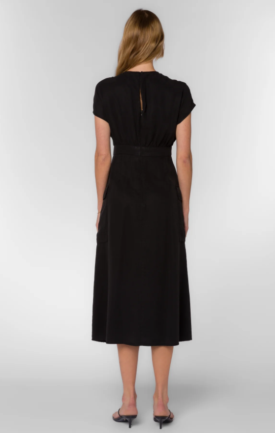 Step into effortless style with the Velvet Heart Geneve Short Sleeve Dress. Made from soft, sustainable TENCEL™ in a cool washed-out black, this dress features playful cargo pockets, a zip-back closure, and a chic front slit. Its flattering pop-over design keeps things modern and comfy, perfect for casual outings or turning heads at evening events.