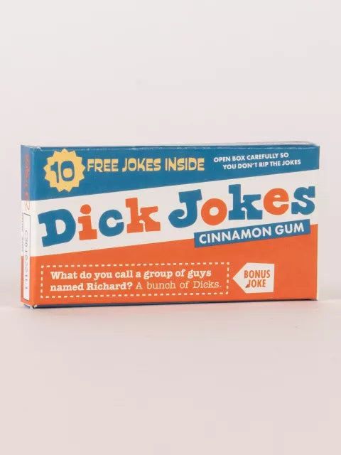 Unlock the laughter with Blue Q Dick Jokes Gum. Each pack contains hilariously raunchy jokes and fresh mint flavor. 100% gluten-free and made in the USA. Perfect for a good time with friends or a gag gift that keeps on giving.