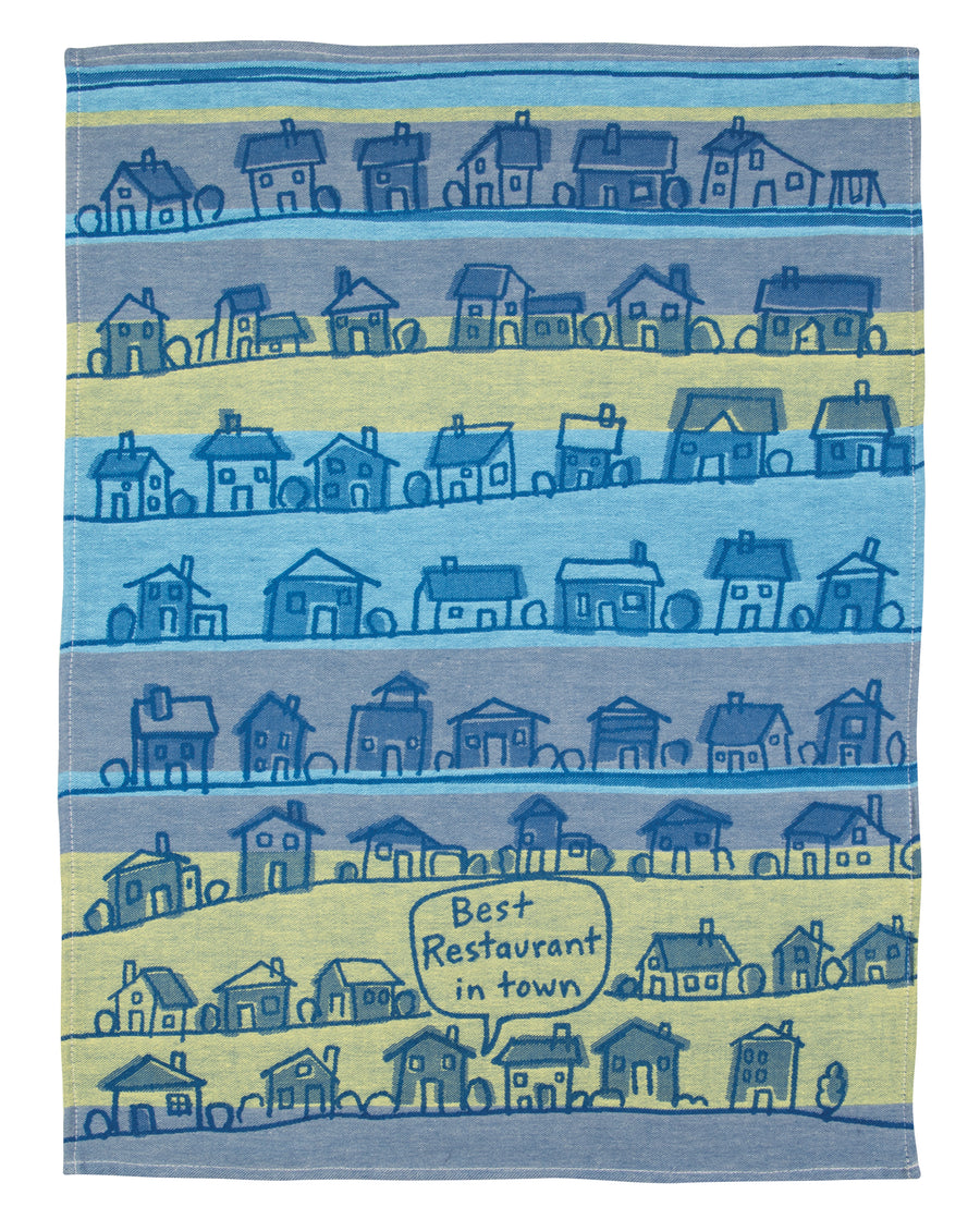 Elevate your kitchen towel game with the Blue Q Best Restaurant In Town Woven Dish Towel. Made from high-quality materials, this towel is not only durable but also absorbent and quick-drying. Plus, the playful design adds a touch of fun to your kitchen decor. Upgrade your cleaning routine with this must-have dish towel.