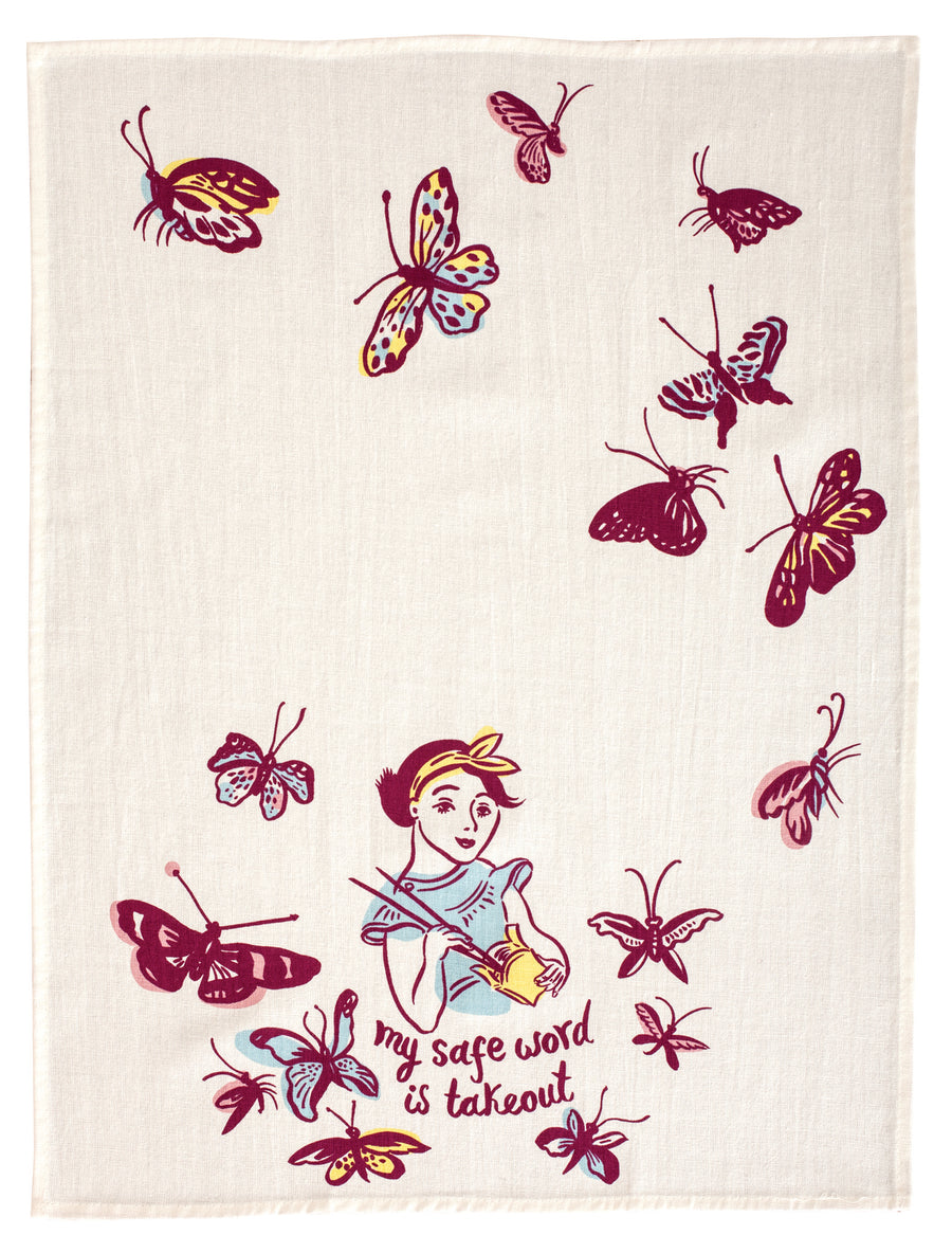 As an expert in the dish towel industry, I present to you the Blue Q Safe Word Is Takeout Screen Printed Dish Towel. Made with superior screen printing technology, this towel features a bold and informative message that adds a touch of humor to any kitchen. With its high-quality material, this towel is not only practical but also a statement piece for any home.