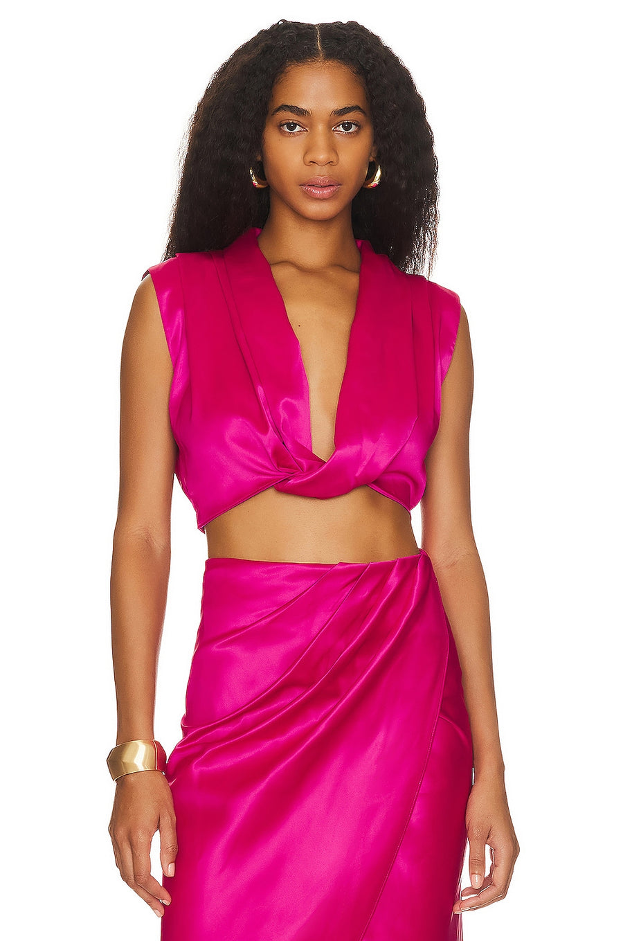 The Line & Dot Lisa Top is the paired top to the Lisa Skirt. This top and a deep neckline and is sleeveless. This is also a cropped shirt.