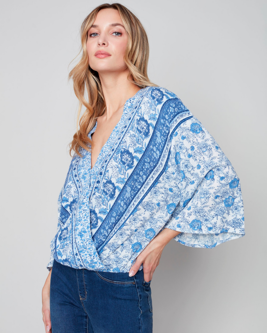 Charlie B Bell Sleeves Paisley Printed Cross Over Blouse