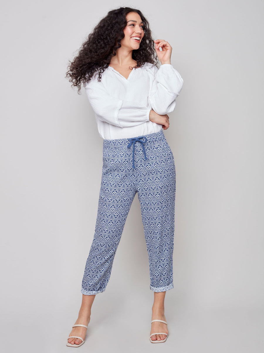 These Charlie B printed canvas linen joggers, are the perfect fun colorful pants to brighten up your spring wardrobe!