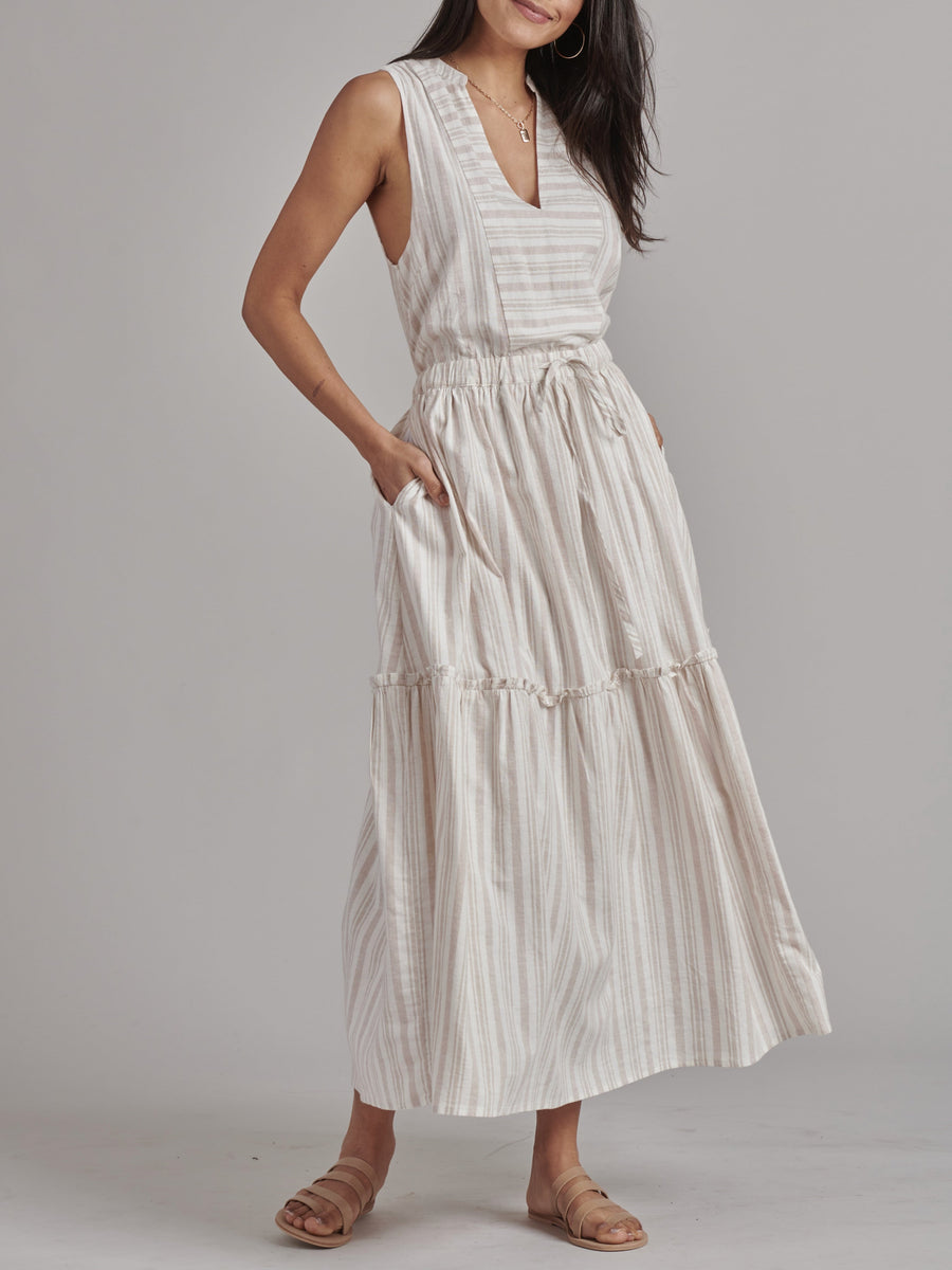 The Splendid Livia Dress is a flowy fawn-striped dress that is perfect for the warmer months. Throw on a jacket on a breezy day for the perfect layered look.