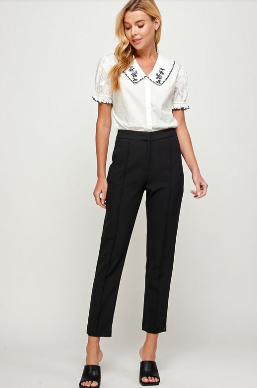 The Ellison Straight Crop Pants are perfect for a professional, sophisticated look. Cut from comfortable, lightweight fabric, these pants feature a flattering straight fit, a tapered cropped leg, and an elasticized waistband for a secure fit. Easy to style, the Ellison Straight Crop Pants will take you anywhere.