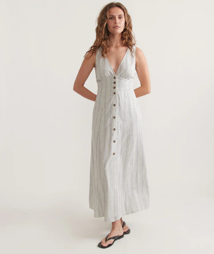 Sail away in style with the Marine Layer Camila Maxi Dress. This breezy dress features a flowy silhouette and a soft fabric that feels like a dream against your skin. Perfect for a day at the beach or a summer picnic, you'll love how effortlessly this dress fits into your wardrobe.