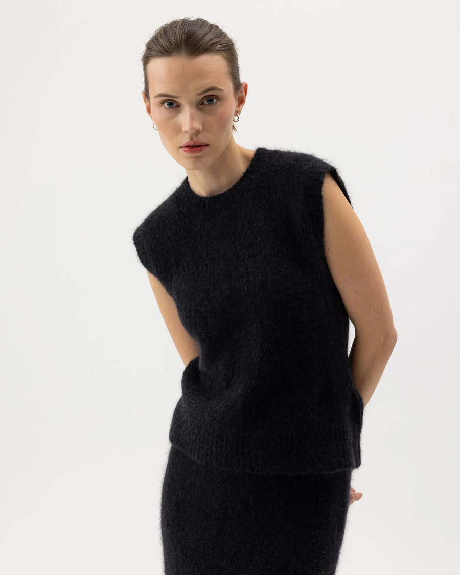 Molly Bracken Textured Sleeveless Mock Neck Sweater