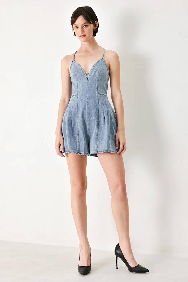 Flying Tomato Denim Wide Leg Open Back Romper