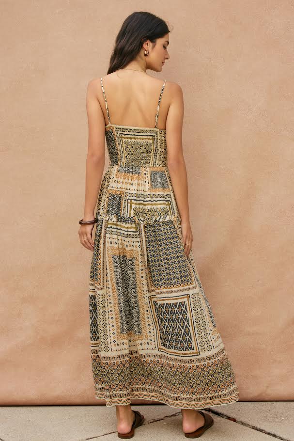 Flying Tomato Printed Midi Straight Neckline Smocked Back Dress