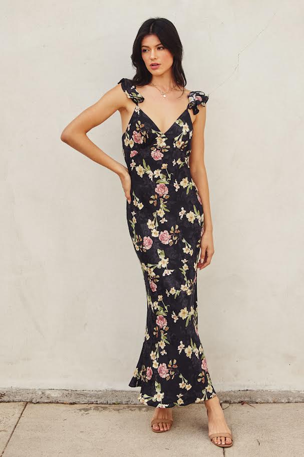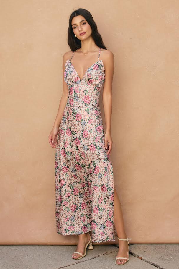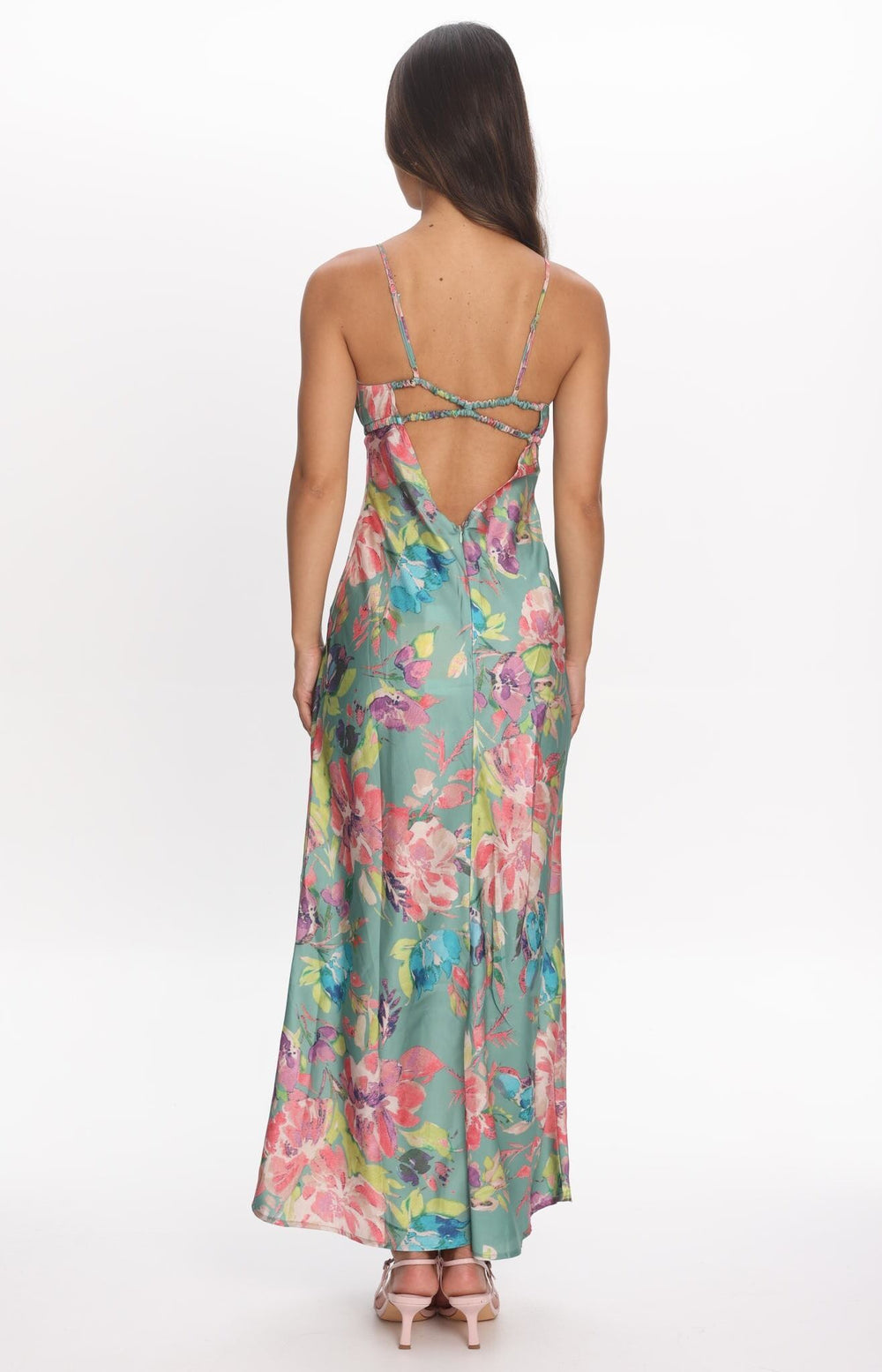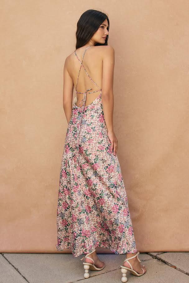One & Only Floral Maxi Spaghetti Open Back Strap Dress
