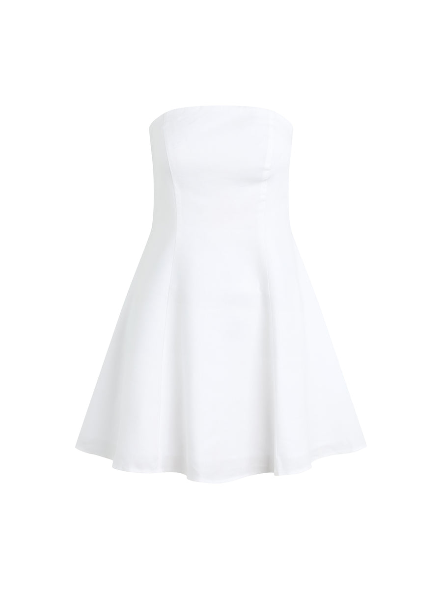 The Favorite Daughter presents the Favorite Mini Linen Dress, a strapless dress with a flared skirt that is perfect for any occasion. Made with 67% Lyocell and 33% Linen, this dress is both stylish and comfortable, ensuring you look and feel your best!
