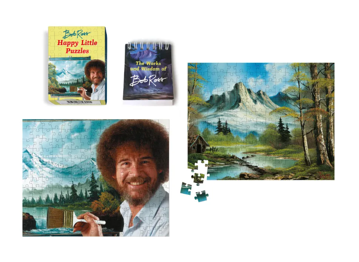 Celebrate the joy of painting with the Hachette Bob Ross: Happy Little Puzzles kit. This set includes two unique 180-piece mini puzzles—one showcasing a serene landscape and the other capturing Bob Ross at work—each completing to a compact 7-1/2 x 6″ size. Also included is a 2-1/2 x 3″ easel flipbook filled with Bob’s inspiring artwork and uplifting words. Perfect for fans and mindful pastime lovers, this kit offers a relaxing, creative escape anytime.