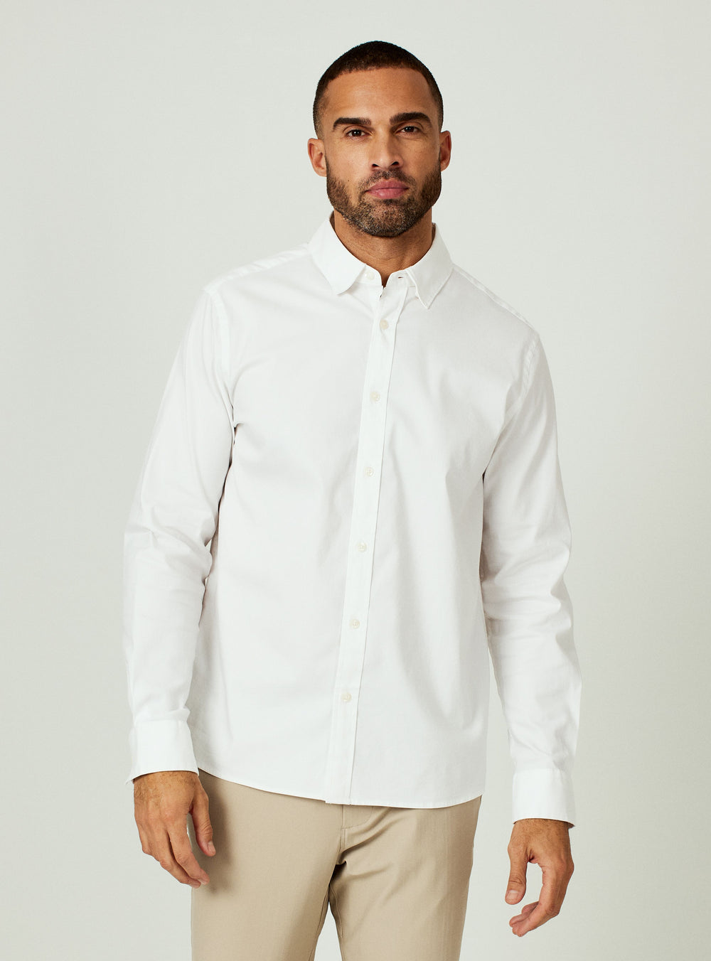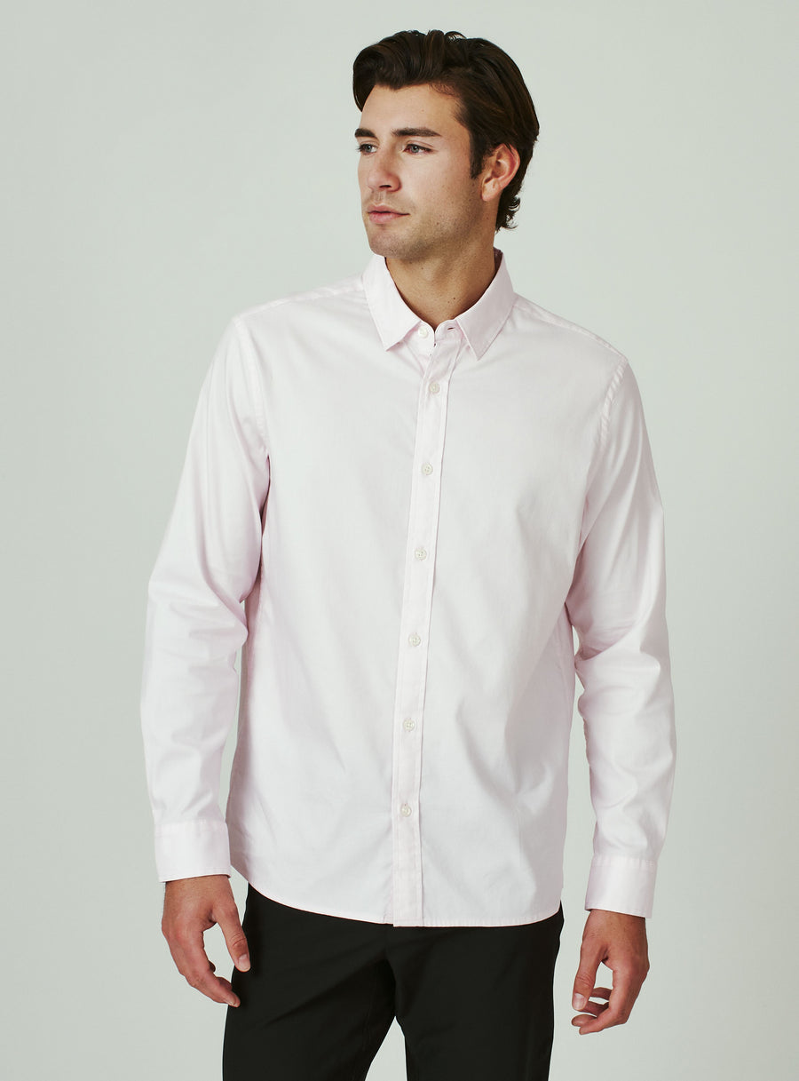 Das 7 Diamonds Venetia Langarmhemd mit Kragen ist vorne durchgehend mit Knöpfen versehen. Dieses Hemd ist in Baumwollrosa, Weiß oder Hellblau erhältlich.