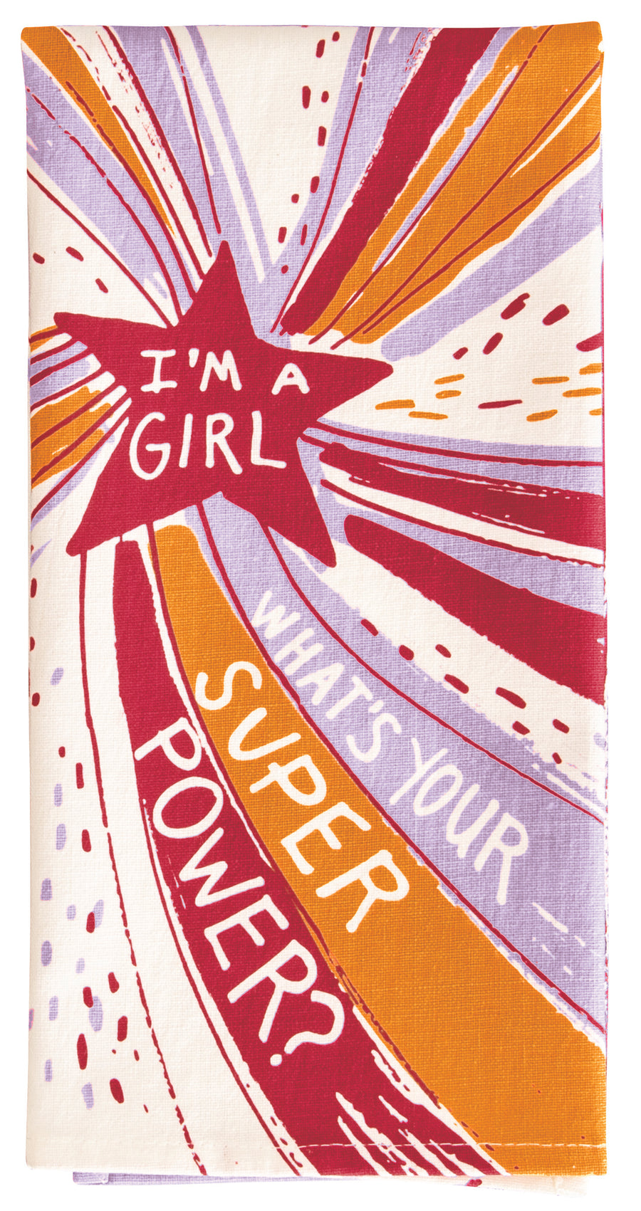 This screen printed dish towel from Blue Q is a powerful addition to any kitchen. Made of durable cotton, it features a unique design that adds a touch of fun to your everyday chores. With its high-quality printing and absorbent material, this towel is both practical and stylish.