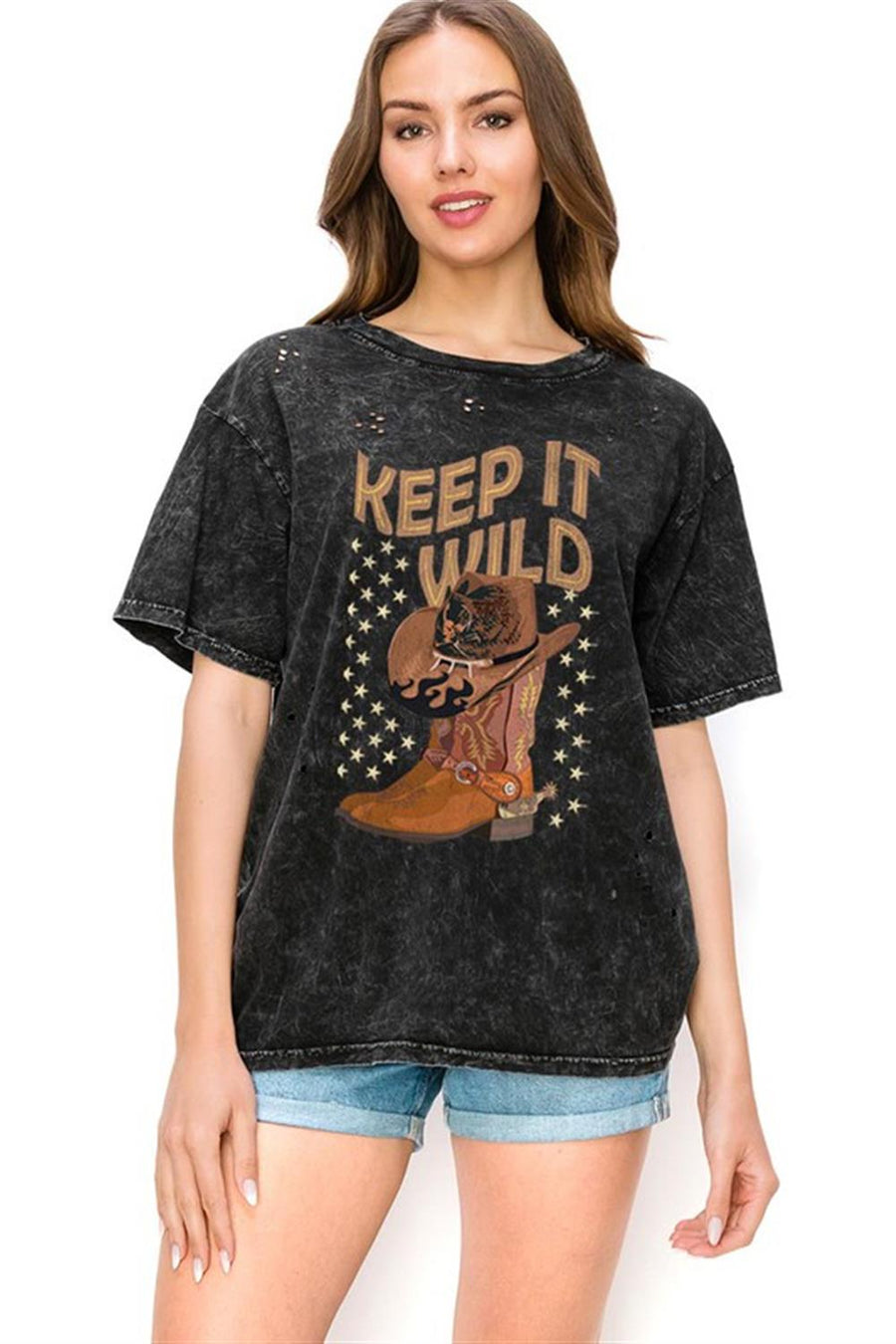 Round up your western look with this playful G Mini Keep It Wild Tee. Show off your wild side with the quirky design and keep things fun with the word play. Perfect for any casual occasion, this tee is a must-have for those who don't take themselves too seriously. (Yeehaw!)