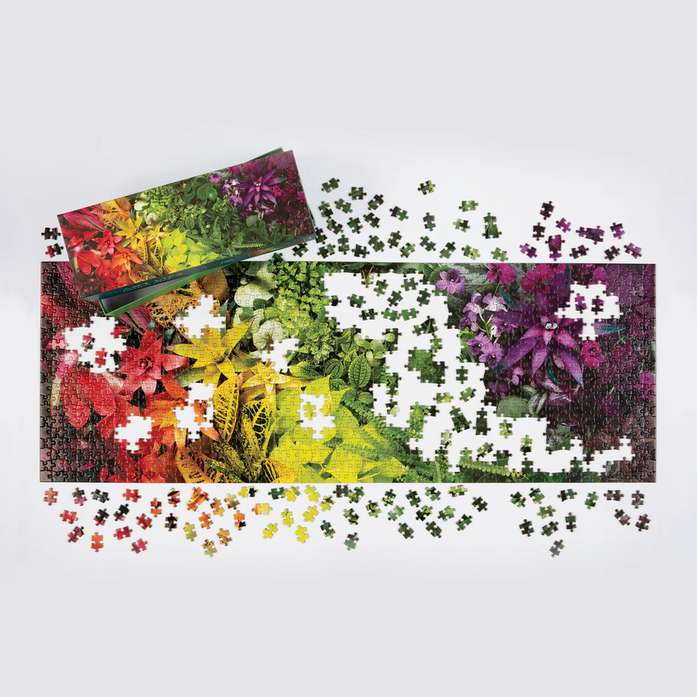 Get lost in a rainbow of colors with our Galison Plant Life 1000 Piece Panoramic Puzzle. With a stunning landscape image of vibrant plants, this puzzle is sure to bring joy and relaxation. Measuring 39 x 13.93 inches, it's the perfect size for challenging your mind. Minimal puzzle dust means more time for fun. Box measures 14 x 5 x 2.75 inches.